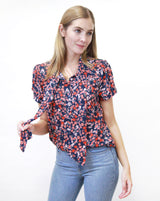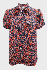 Tie Neck Short Sleeve Blouse